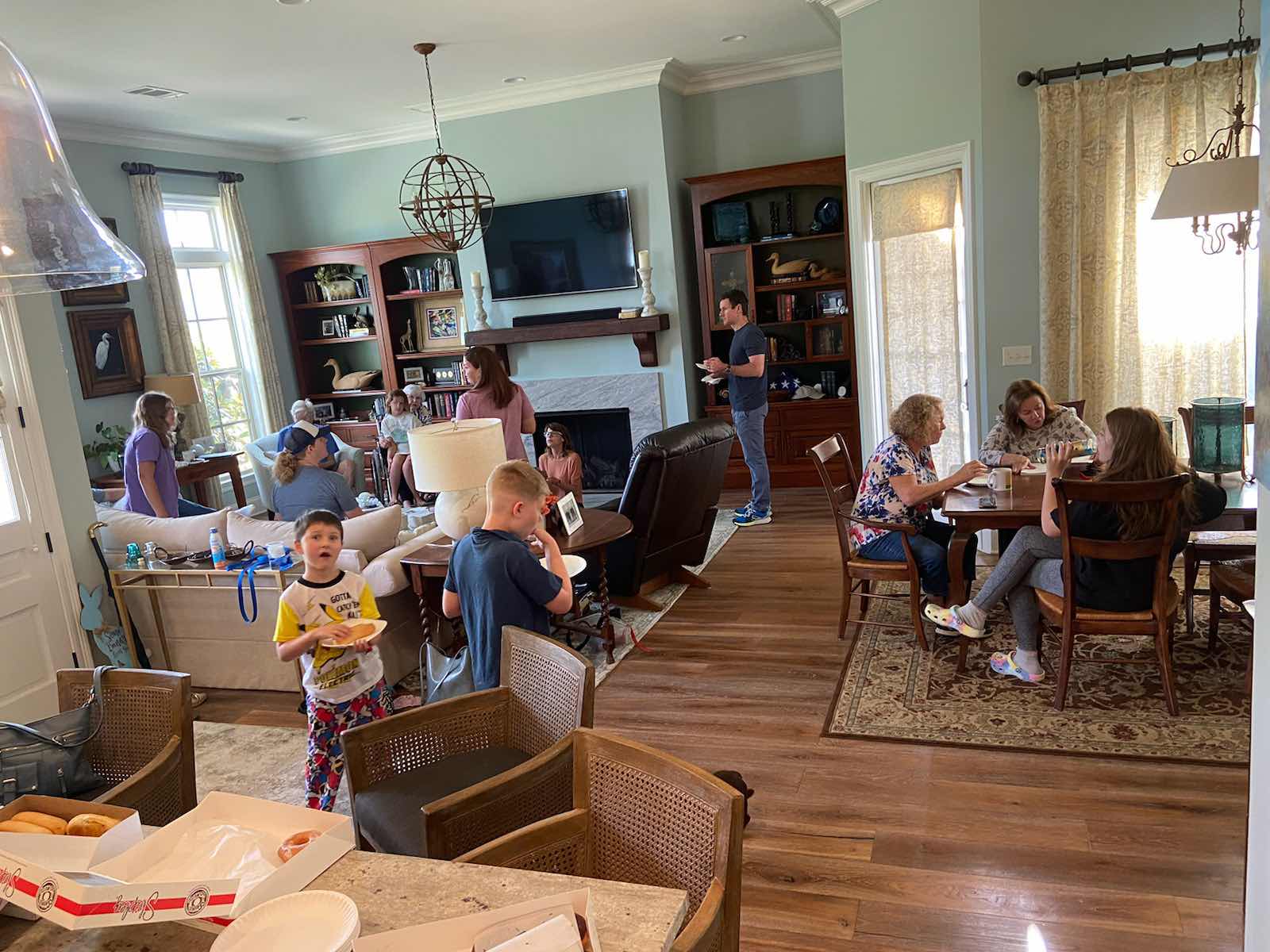 The only downfall is she no longer has a patio with a private entrance so kids can’t go inside anymore. KatieJane was a little sad she didn’t get to visit with her much for the weekend (no kids at the wedding and too busy swimming Friday night) so I came up with a way to remedy that. Dad and I picked her up at 7:00 on Sunday morning and got a bunch of donuts so that everyone could come visit and say goodbye to her easier as they left town.