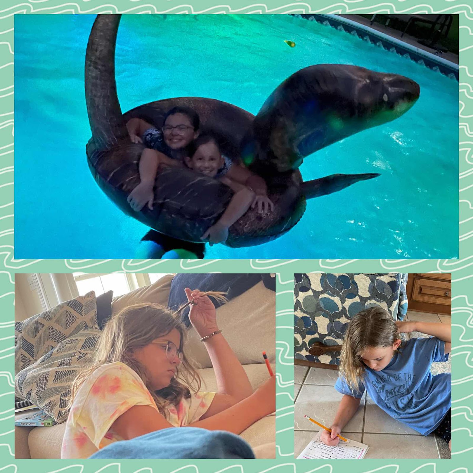 I don’t know how we’ve lived in this house over a year and Monday night was the first time the girls have had a night swim. They thought it was very fun even if they did get a little scared once it got really dark. 😉 It was a fun way to end the day after this mean Mama made them do worksheets from a summer bridge workbook that morning. 🙄