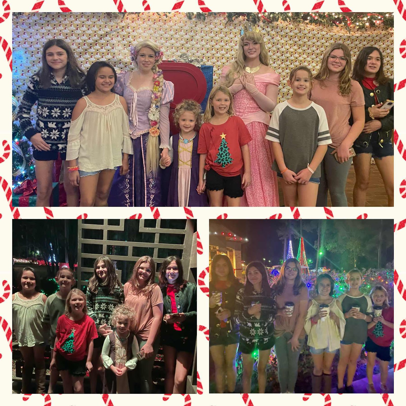 The Christmas fun continued last weekend even after Pancakes with Santa. On Sunday evening we met Cara, Luke and Josie at Christmas in Roseland for our annual visit to those lights. It was Britney and Bella’s last Sunday night with us (no more chemo for Heather!) and we brought Landry and Kaylee along too so there were 6 kids in my car. A pretty typical day for me. 😉