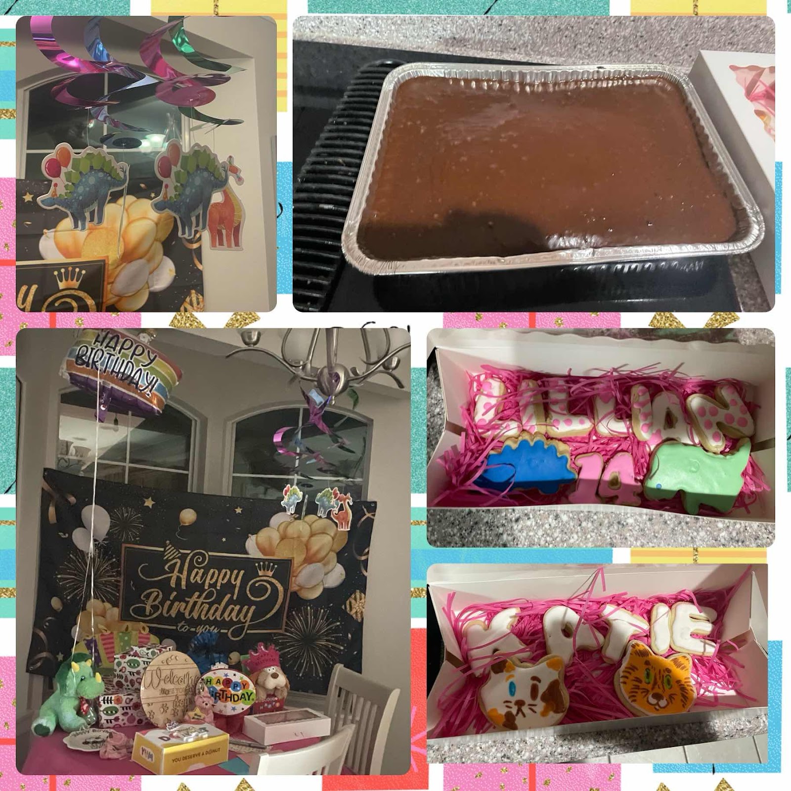 She woke up to her birthday table. I had also made her favorite, chocolate sheet cake, and name cookies for a special treat. Of course I had to include Katie too!